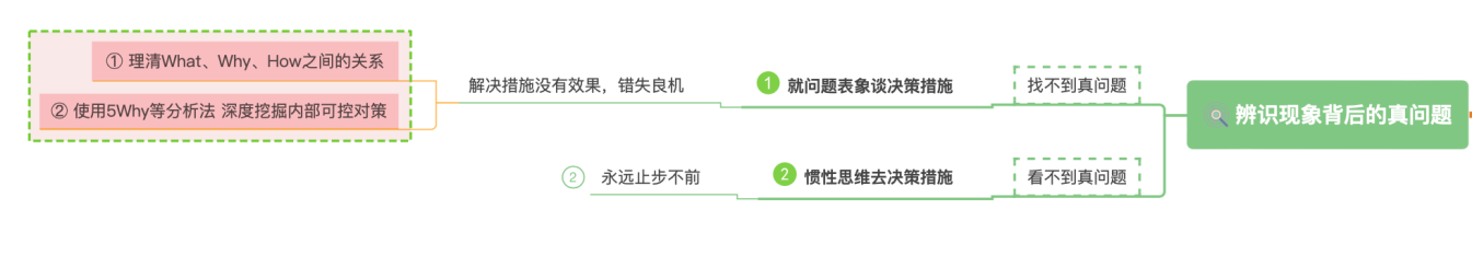 第一个坑,理不清问题中的What、Why、How就是我们在面临的现象“⑥就问题表象谈决策措施,甚至常常沉陷在细节里过多探讨”的优化方向。