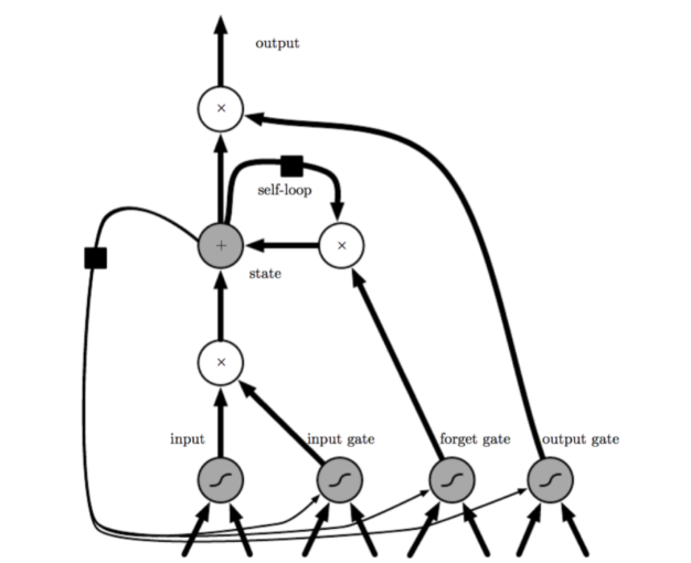 回到LSTM算法,其是一种特殊的RNN(Recurrent neural network,循环神经网络),RNN是一系列能够处理序列数据的神经网络的总称。RNN在处理长期依赖(时间序列上距离较远的节点)时会遇到巨大的困难,LSTM模型作为门限RNN中最著名的一种,被研究人员提出用来解决RNN模型梯度弥散的问题。以下为其单一节点的结构图。如图7–2所示。
