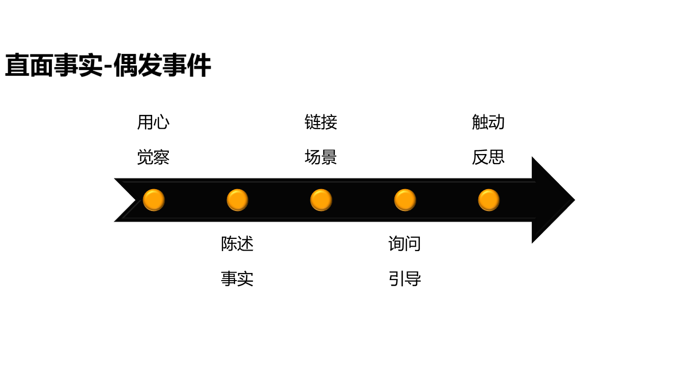 关于第一个步骤“用心觉察”。这是运用“偶发事件”的基本前提,如果培训师在现场对一些事情或现象“视而不见”或“熟视无睹”,这种方法就无从谈起。