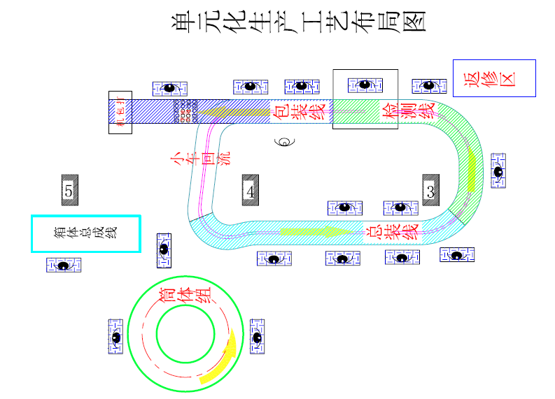 ​ 产线布置首先要有工艺提出,应满足生产、安全、管理等方面的要求。