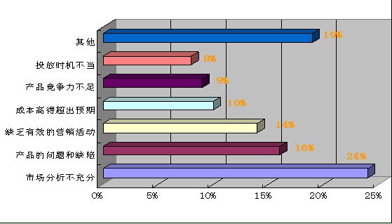 加拿大的罗伯特·G.库珀先生在著作《新产品开发流程管理(第三版)》中,归纳了新产品开发失败的原因。从图1-1可以看出,市场分析不充分是导致新产品开发项目失败的首要原因。