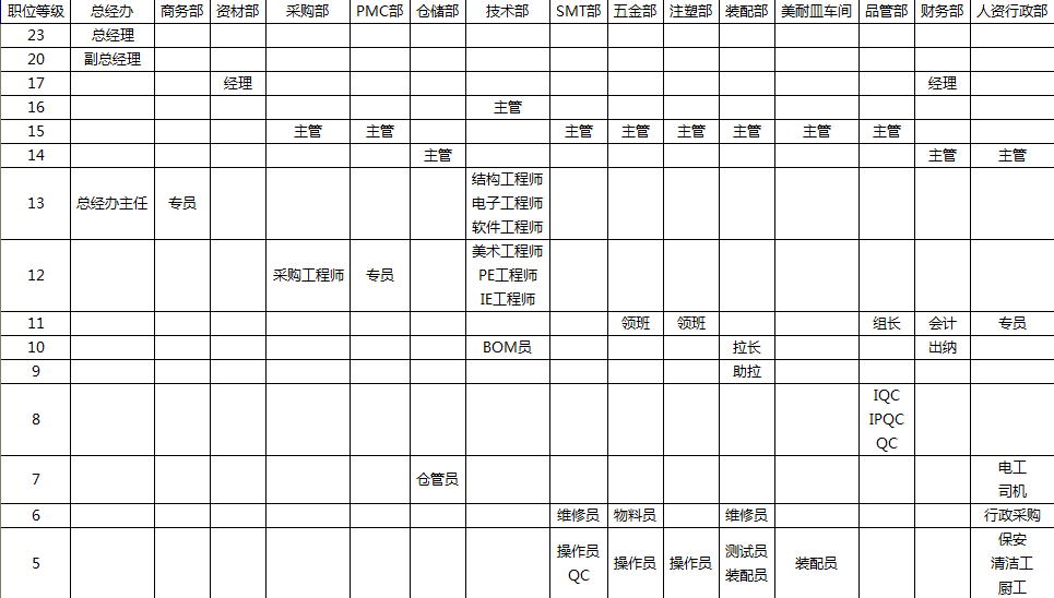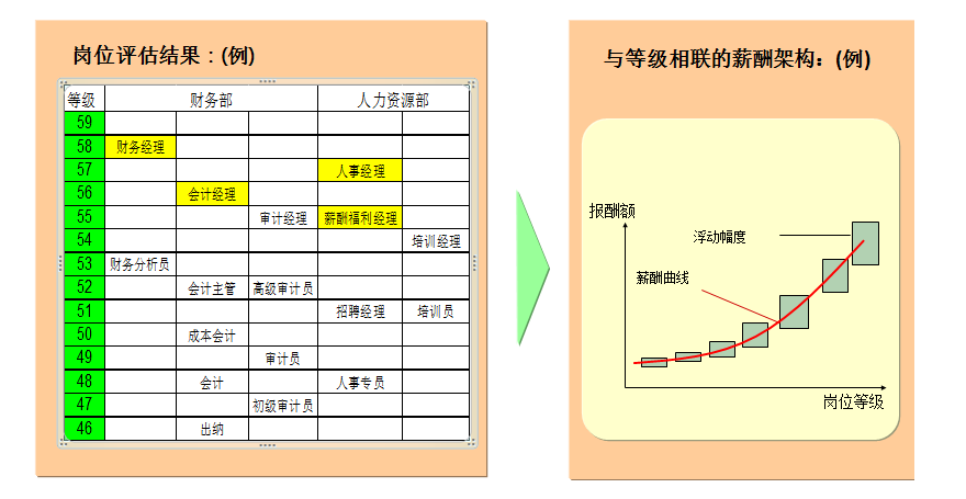 (2)根据该职位的总分,查分数与等级对照表,得出职位等级。