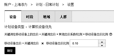 请注意一点,这里没有设置取消移动端广告的选项,这也算是百度的捆绑广告。要想少做甚至不做移动端广告,只能把移动端出价比例调到百度允许的最低值0.1倍。