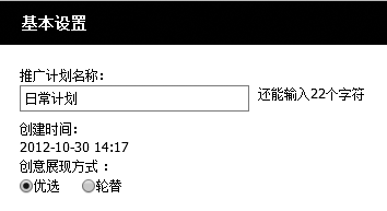 ①【基本设置】:如图3-23所示,除了能在此修改计划名称外,还可以修改广告创意的展现方式,选择“优选”,意味着哪个广告创意好、点击率高,该广告创意就多展现;选“轮替”选项,意味着不分好坏,创意轮换出现。
