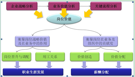 一方面,衡量岗位战略价值及岗位在业务中的作用,作为该岗位员工晋升与调配、用工关系管理的依据,用于员工职业生涯发展和用工策略。