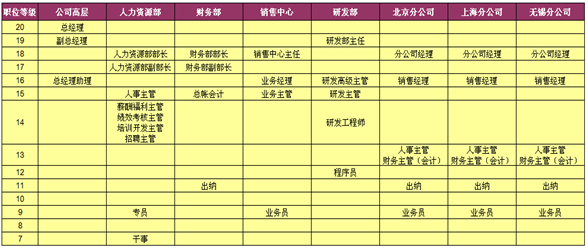 这可以反映很多信息,最直接反映的是各岗位之间的等级差异和对应关系,另外还可以将员工岗位等级进行排列明确下来,形成员工职业生涯发展路径。