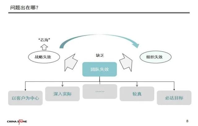 战略失效其实是文化失效,文化失效是最底层原因。比如,为什么会用“芯海战术”?难道是公司不会产品战略管理工具?事实上,该公司产品规划做得非常专业,问题出在大家不是“以客户为中心”,没有把下列问题“深入实际”研究透:客户是谁?客户的需求和痛点是什么?客户的用户是谁?用户的需求和痛点是什么?用户的技术和应用发展趋势是什么?有哪些竞争对手?竞争对手有哪些竞品?优劣势是什么?未来的想法会是什么?……所以做产品规划时,心中可能没底,那就多做几个芯片吧,总有一个芯片做对吧,于是就产生了“芯海战术”。那么,为什么大家不“以客户为中心,深入实际”呢?原来公司从老板开始,都过于和善,没有较真、必达目标的习惯。其实知道有问题,但是太过和善,不去较真,许多事情就不了了之(图2)。