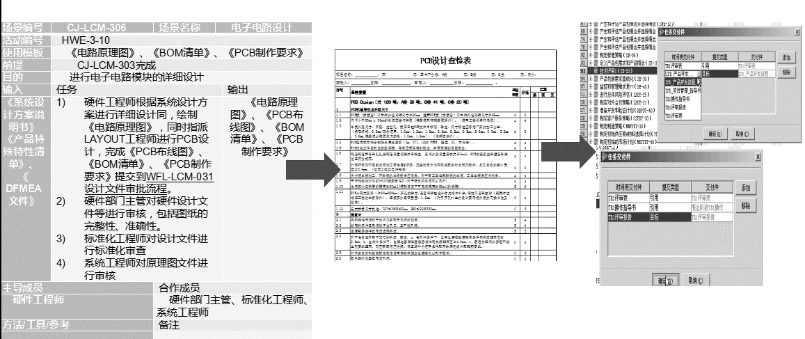 基于业务要求优化完善产品数据,从流程、数据、项目管理等层面定义数据模型,实现产品数据和项目管理的融合。根据实际业务场景将流程体系所规范的检查表、模板、操作指导书等配置到流程模板中,保证规范体系在设计过程中被引用。如图5-8所示。