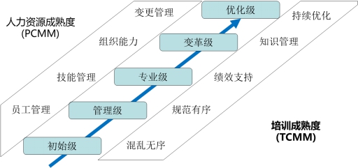 培训体系的发展是随着人力资源的成熟而成熟的,大致经历五个成熟度级别,如图2-6所示。
