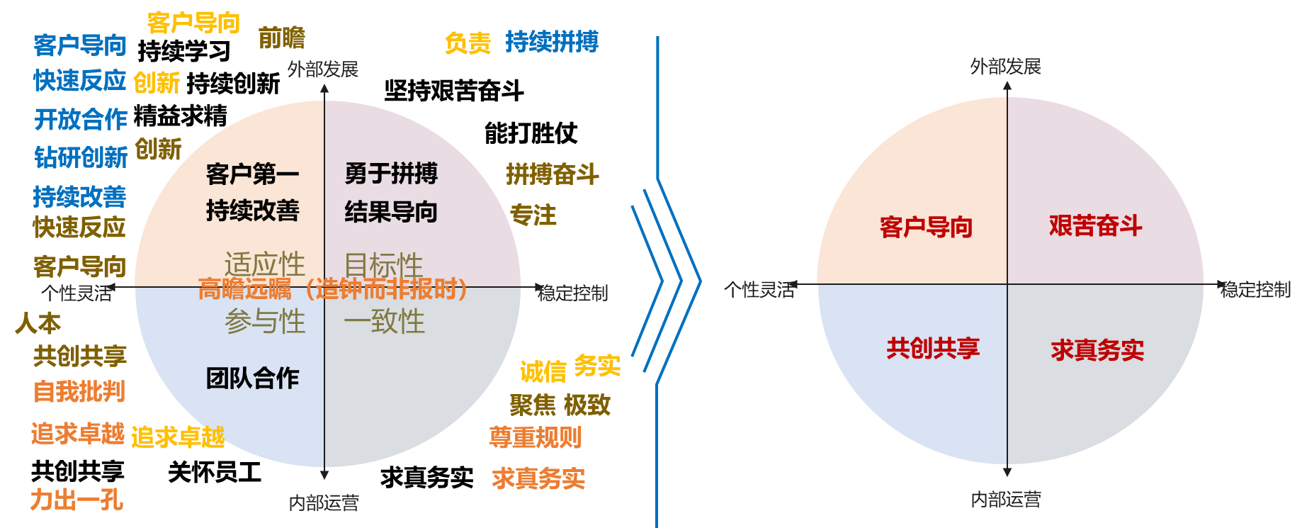 价值观具有稳定性,一旦确立下来,不宜频繁变动,因此价值观的梳理提炼应着眼未来,能支撑企业长远目标的实现。