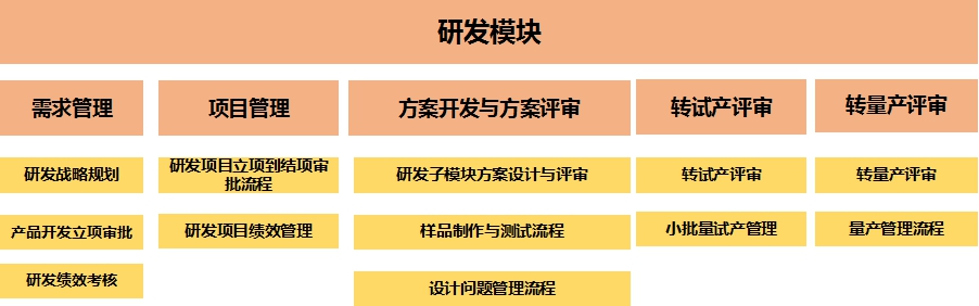 第一,承接公司统一的战略要求,提升研发成功率与控制研发成本。这一点通过需求管理、转试产与转量产模块体现。
