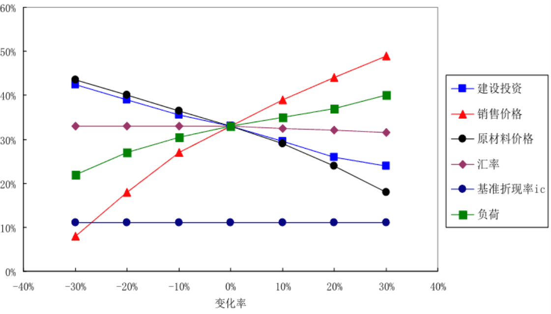 ①根据项目特点,结合经验判断选择对项目效益影响较大且重要的不确定因素进行分析。经验表明,主要对产出品价格、建设投资、主要投入物价格或可变成本、达产率、建设工期及汇率等不确定因素进行敏感性分析。