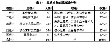 表4-4 激励对象的层级划分表