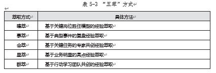 基于 SECI 模型原理,要将组织的隐性知识显性化,我们可以通过组织经验萃取模式来实现,即将经验萃取辐射到组织日常工作的方方面面,也就是通过“五萃”方式实现,如表 5-3 表示。
