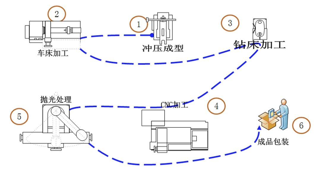 冲压成型 | 车床加工 | 铣床加工 | 钻床加工 | 磨床加工 | CNC加工 | 抛光处理 | 包装 | |