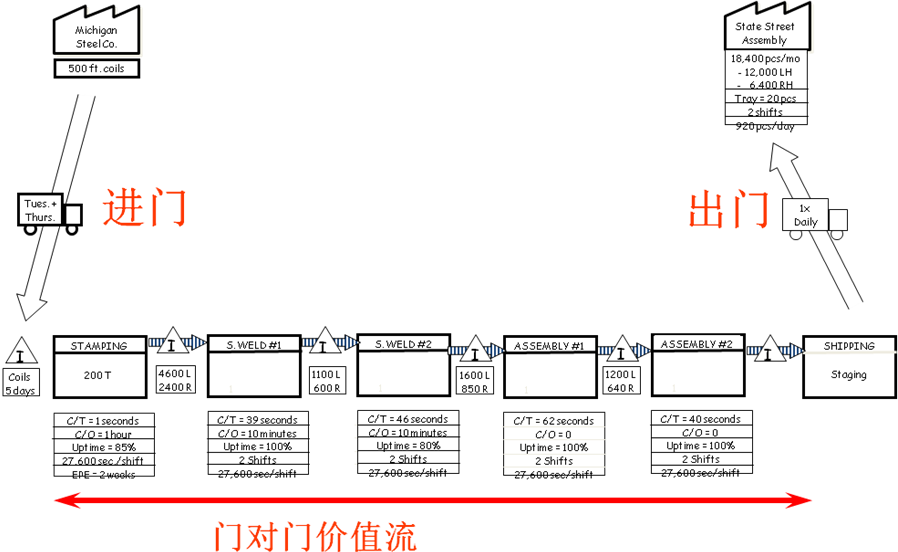 ⑥寻找问题点需采用团队讨论,并使用头脑风暴法来识别整个现状的价值流程图所有的改善着眼点。