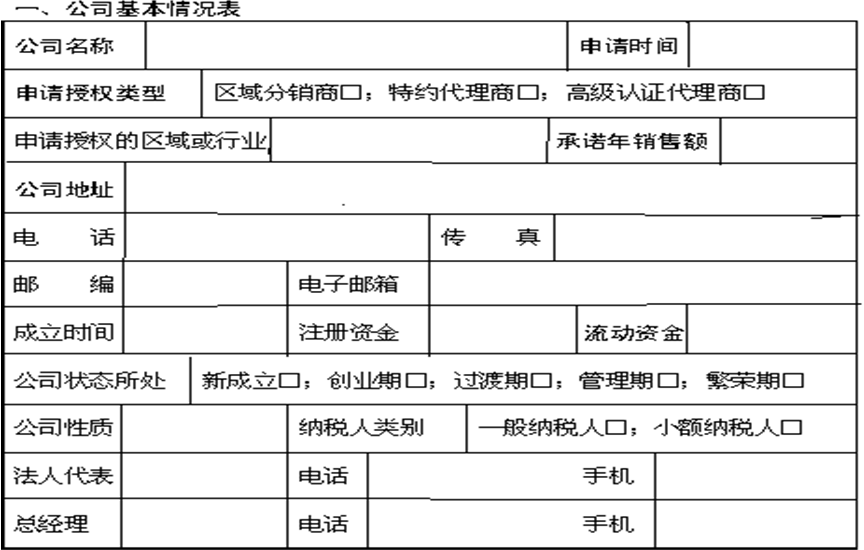 除了公司名称、申请时间、申请授权代理的类型、申请授权区域和行业外,有一些关键的信息:当被要求填写“承诺年销售额”“流动资金”时,书面比口头更准确;公司所处的状态,是了解该客户目前处于生命周期的哪个阶段;是一般纳税人还是小额纳税人,前者国家对其规模和年销售额要求更高,要求公司的财务管理更规范。