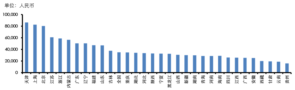 图1-4 中国各省直辖市2011年人均GDP比较