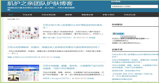 1)客户可能问到的产品问题。可以在博客里做一些产品展示,比如护肤知识,每个产品的功效、使用方法、产品安全问题等。