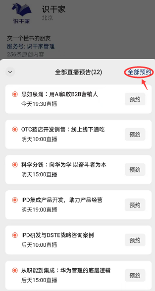 一键预约全部直播