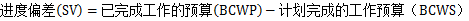 (1)进度偏差(SV):是指从日期角度来看,已完成工作的预算(BCWP)和计划完成的工作预算(BCWS)之间的差异,计算公式为: