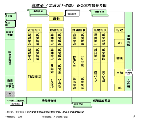 图10-6 营业所(经销1~2组)办公室布置参考图