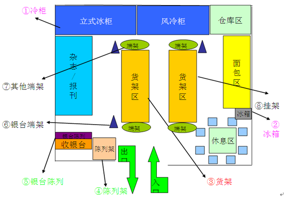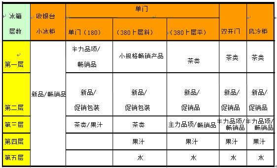 (2)大卖场或超市冰箱陈列顺位,如表7-6所示。