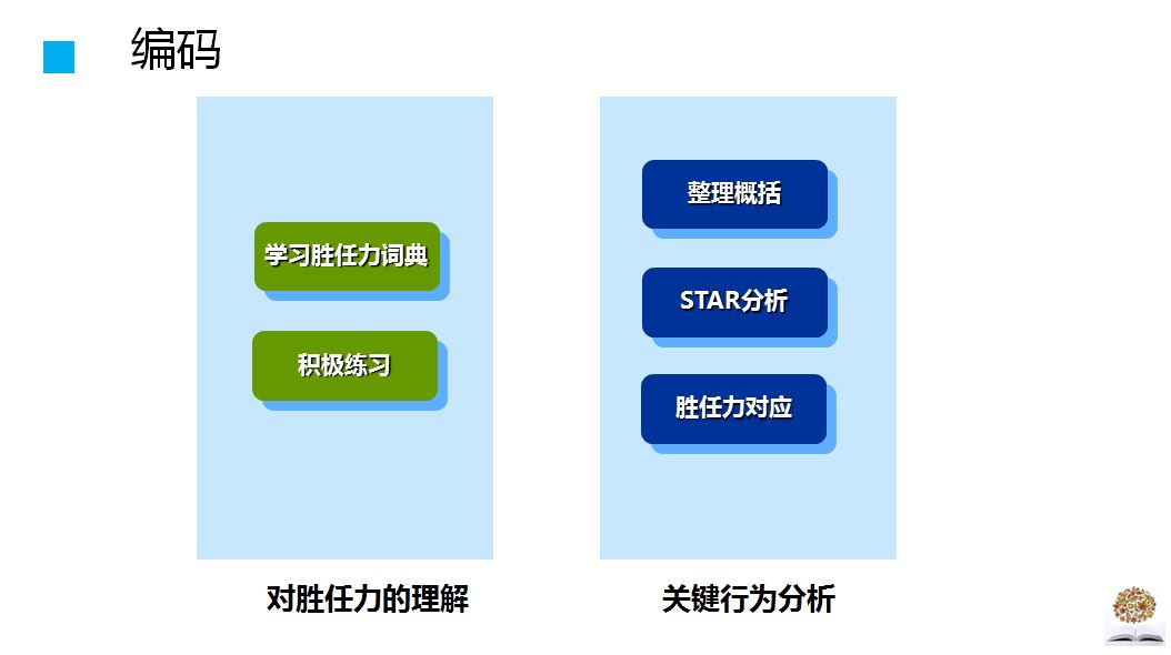 通过上面的案例,会发现编码本身主要包含两个能力:对胜任力的理解、