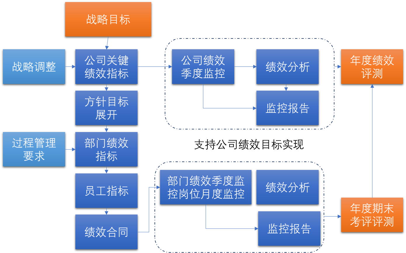 明确可量化的企业关键指标是企业经营成功的关键,关键业绩指标即通常所说的KPI。建立切实可行的KPI体系是做好企业运营的关键。通过指标可以明确组织负责人的主要责任。管理的好坏也是通过关键绩效指标的水平来衡量的,通过各级流程指标的分析来评估流程的执行情况。对于出现指标表现不良的流程即为改善项目切入点。如图5-6所示。