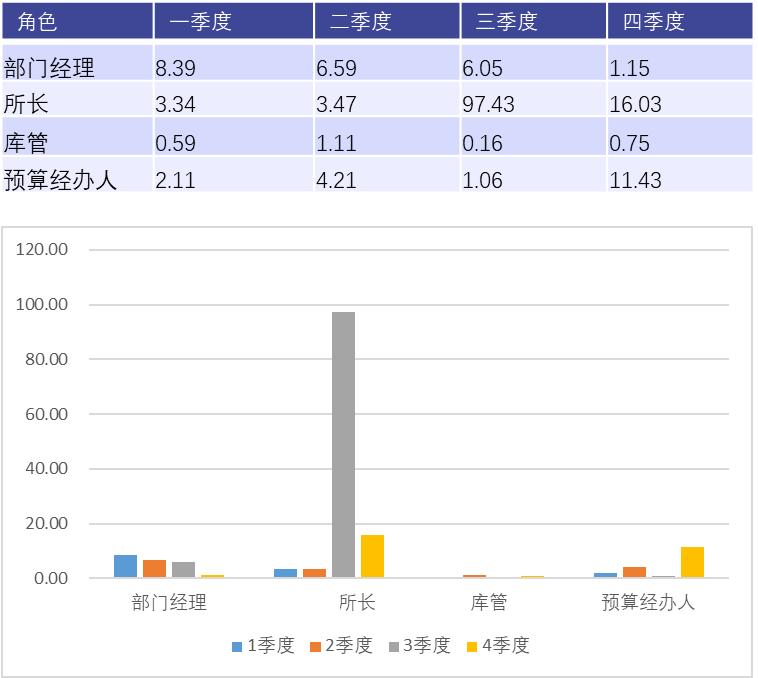 不同审批角色之间,效率也存在较大的差异,部门领导往往耗时较久。