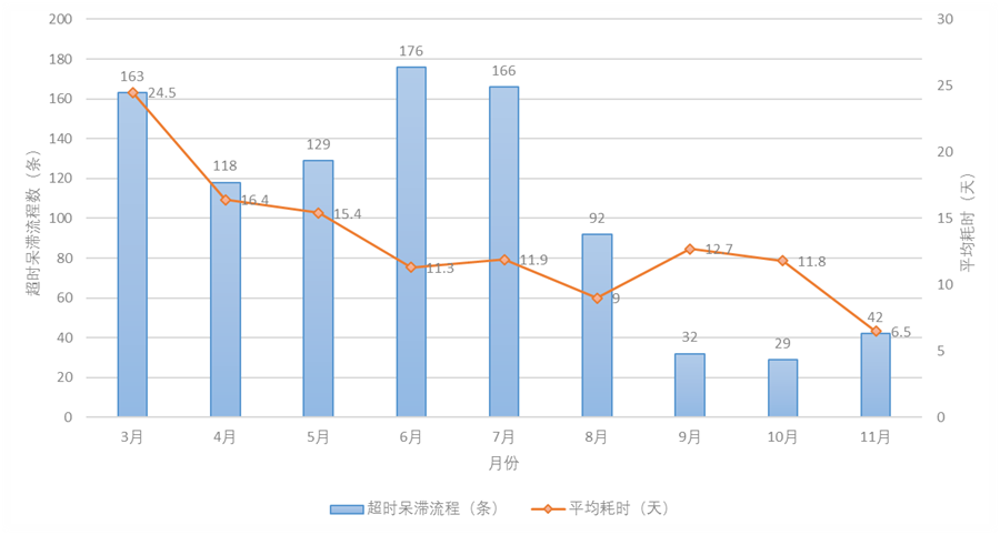 其次,和集团行政的沟通,找出具体的责任人,尤其是部门领导节点审批人的审批效率进行分析和展示,督促相关责任人及时完成审批。