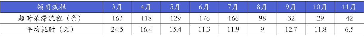 集团行政虽然也知道领用流程存在一定的效率问题,但面对这样的数据还是吃惊不已。