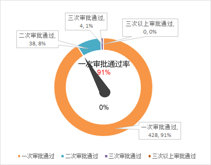 于是,我们尝试采用其他的方式来分析流程数据,提出一次审批通过率的概念,来表征流程的质量。
