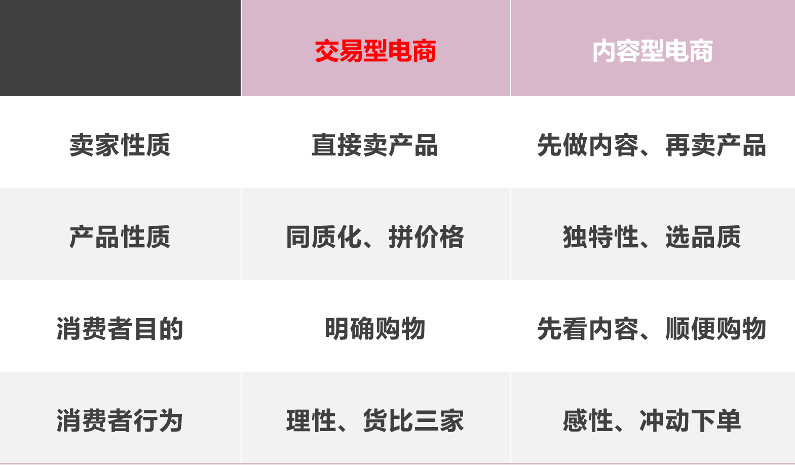 表5-1交易型电商、内容电商对比
