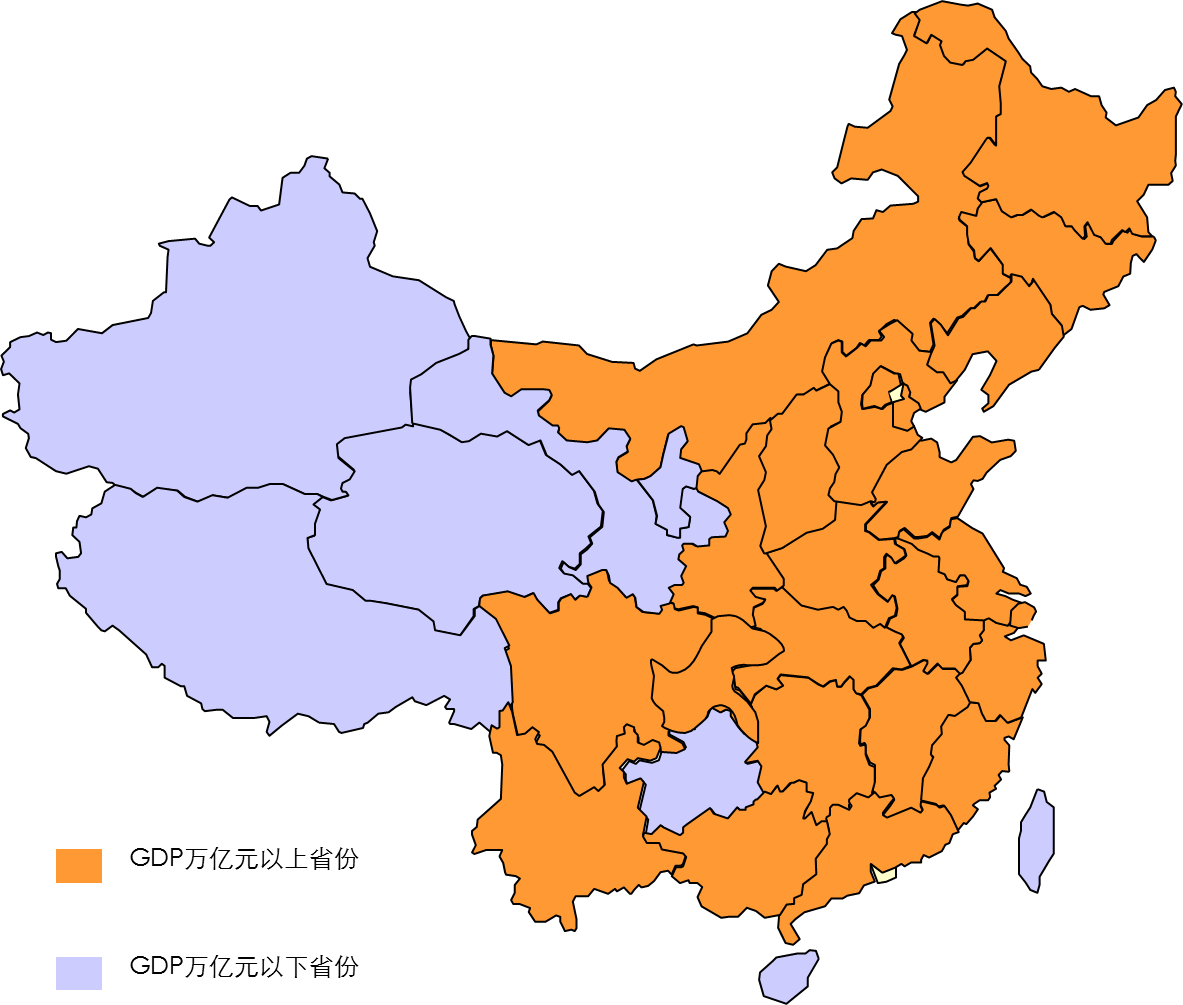 根据国家统计局的数据显示,2012年,中国“万亿城市俱乐部”的成员已经达到24个(广东、江苏、山东、浙江、河南、河北、辽宁、四川、湖南、湖北、上海、福建、北京、安徽、内蒙古、黑龙江、陕西、广西、江西、天津、山西、吉林、重庆、云南),其中北京、上海、广州、杭州、厦门、天津等地区的人均GDP也已经超过了1万美元。如图2-1所示。