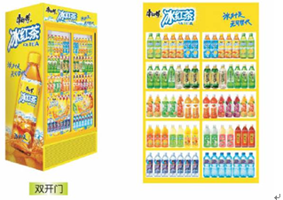 ③ 陈列方式:同品牌垂直陈列,从上到下,由轻到重,同包装水平陈列;遵循先进先出原则;新产品、新包装产品应陈列在冰箱的最佳位置,即靠近冰箱把手的位置,配合新产品的推广。
