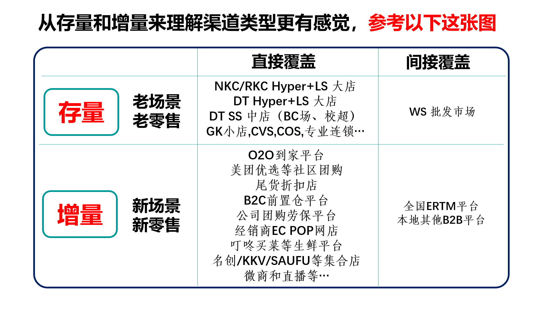 二三线城市:相对于一线城市,二三线城市的渠道演变相对较缓,例如一线城市的很多业态(会员店、互联网生鲜连锁、团购电商平台等)并没有快速渗透到达。这类城市更多是传统核心渠道的延伸性业态(比如提升小店分销效率的B2B和集合邻里社交的社区团购等),所以这类城市的主流生意依然是传统零售和流通渠道,当地销售团队只需要多学习一线城市的经验,提前超纲学习就能领先竞品实现渠道的提前布局,从而建立先发优势。