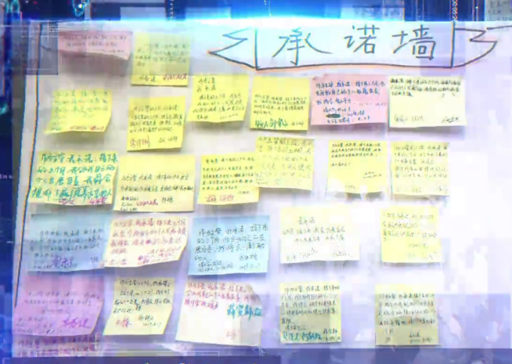 我们在现场布置了承诺墙,分别让基层管理者和主管上级写下未来6个月要兑现的三个承诺,如下: