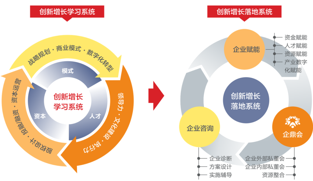 和君的“一体两翼”形成了两两互哺、相生互动、良性循环的业务生态效应,以“咨询+资本+人才”的综合服务实现客户价值倍增。咨询业务直面企业的真实问题,感知和研究最鲜活的经济胎动和商业实践,资本为咨询业务强化品牌力道、创新盈利模式,商学业务以理论与实战相结合的课程与方法,为咨询和资本业务提供优秀人才、理论工具和创新活力。