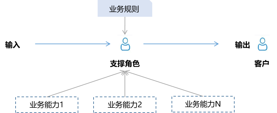 数字场景创新的首要步骤在于明确场景边界,确认场景所包含的关键要素,包括业务单元基本信息、支撑角色、客户对象、输入输出、业务规则、标准、能力、业务流程、关键指标等。同时,需对上述关键要素开展进一步分析,抽象各支撑角色在业务流程活动/业务单元中所肩负的职能,基于端到端视角系统梳理直接客户的需求、触点,拆解需要配备数据、技术、流程、组织等核心能力要素维,识别场景的起点、终点以及业务流程、活动,进而明确核心要素之间的内在逻辑关系,如图3.9所示。