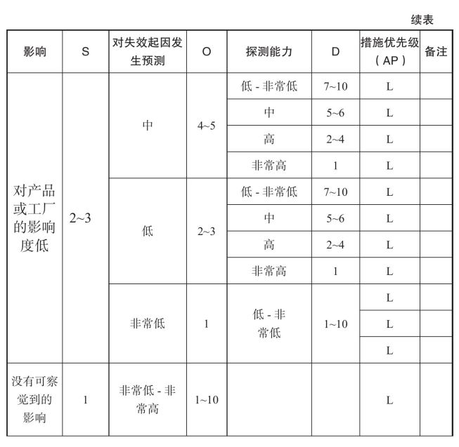 以上失效模式,因为风险分析的结果就是中风险或低风险,如果可行,可以采取措施;不可行,就不用采取措施。一般是把所有工序的失效分析做完,再做风险分析,风险分析也是先从高分打到低分,比如严重度10分,先找失效影响有无10分的,没有就找9分的失效影响。