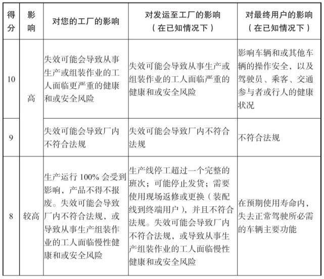表2-6 PFMEA严重度评分标准