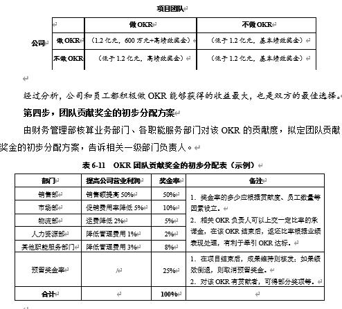 表6-11 OKR团队贡献奖金的初步分配表(示例)
