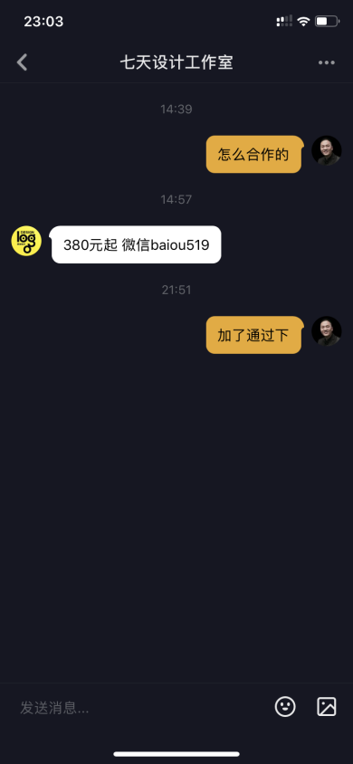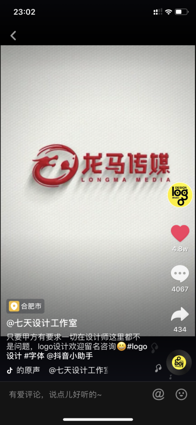 有一个做设计的账号“七天设计工作室”(图7-5),通过分享每一个LOGO设计的过程,让粉丝感到敬佩,进而产生咨询交流。对方会引导粉丝到微信交流,进行转化,效果很不错。不过,抖音在封杀微信,在留言沟通时,尽量不要提“微信”两个字,可以巧妙暗示。