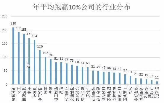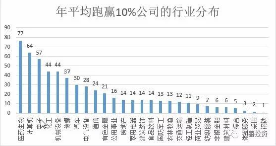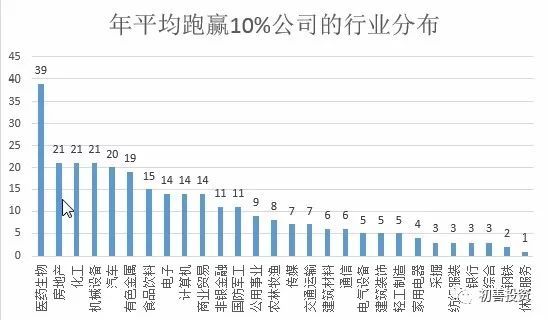 图3-3十年间年平均跑赢年化10%公司的行业分布