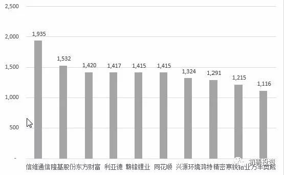从个股上看,涨幅前十的均超过11倍。分别为信维通信、隆基股份、东方财富、利亚德、赣锋锂业、同花顺、兴源环境等。如图3-2所示。