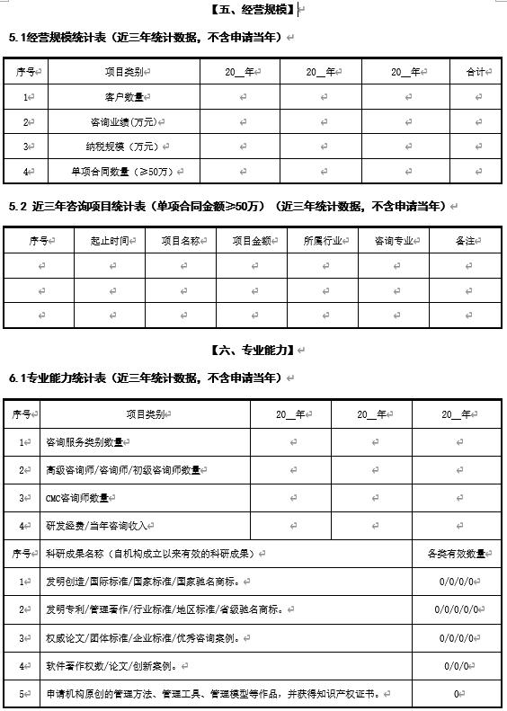 评价机构应定期向社会发布参评管理咨询师的自然人管理咨询等级能力评价工作通知,并受理参评管理咨询师自然人的参评申请。申请表可由评价机构适时发布,其格式应包括但不限于以下内容: