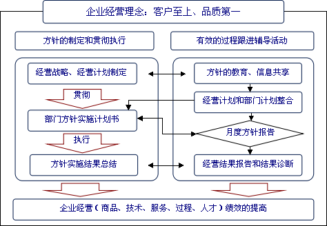 方针管理计划书的制定,要求企业经营者能够明确定义和分解经营战略,协同管理者和员工提出实现方针或目标的具体的改善措施,杜绝口号式的计划,反对简单地将数字化目标分解给下属的不负责任的做法。