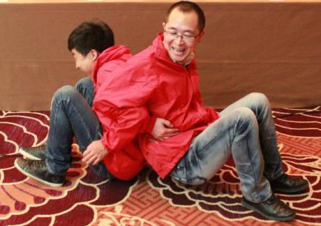 图6-3的“人山人海”游戏体现了互相支持的意义,当两个人背靠背坐下后,很难起来。很多人只想自己,想要自己先起来,然后去带动另外一个(如图6-4所示),其实这样是不科学也不现实的。最容易的方法是大家相互支持,用背部的力量去顶对方,这样形成一个支点,通过两腿的力量加上第三个支点把两个人带动起来,再多的人,原理是一样的,只是需要团队统一的命令和统一的配合,不然很难快速起来。