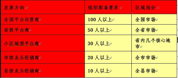 经销商可从这七个方面分析自己公司的实力,并对自身实力做出评估,确定未来的发展方向。笔者根据目前大多数经销商的发展方向总结出未来商家有五个发展方向,如表1-13所示。